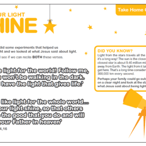 Written by Louise Eccleston and Sally Smith this curriculum uses an acrostic of the word LIGHT to encourage children to think about the ways they can make Jesus known in their own communities. A practical, fun and engaging program that leaders and kids will love.Download the Shine Your Light Sampler